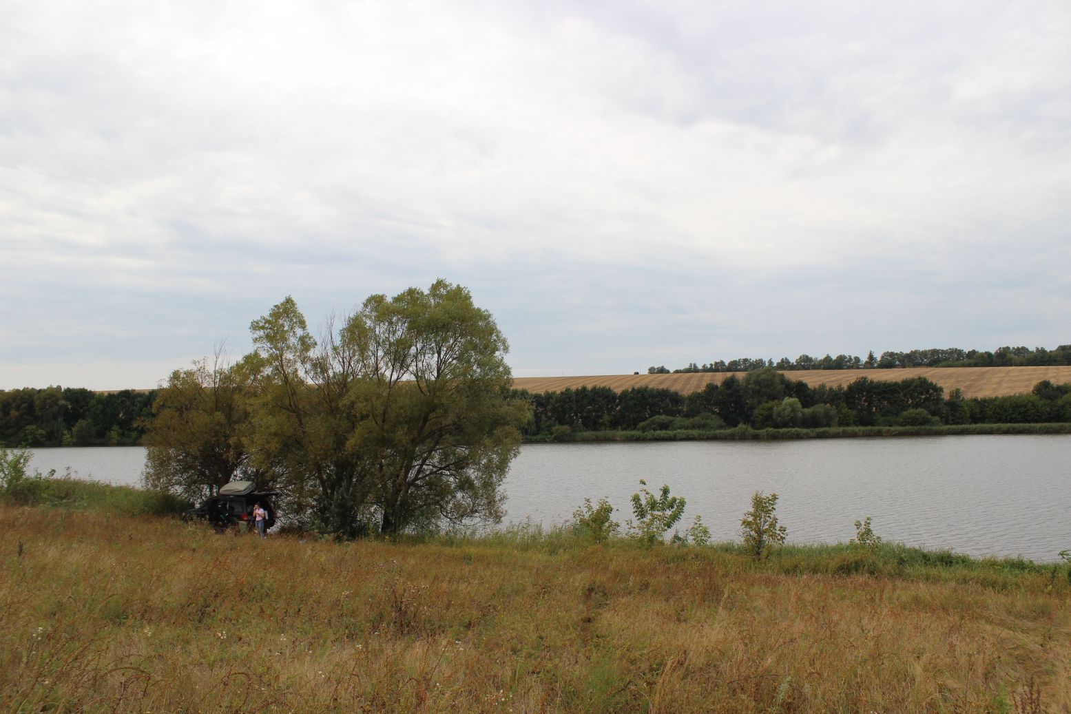 Поехали в сторону Иваньков, там типа парк, но по дороге свернули на озерцо, для ночевки. Звук компрессора при накачке матраца привлек мужика с берданкой и овчаркой Люся. Разговорились - оказалось что озеро арендовано для развода рыбы на продажу, и вообщем-то походу, зарыблено прилично. Но так как мы мирные туристы, поулыбались и разрешил нам стоять на месте, только попросил за собой все убрать (странная просьба, но малоли). Спать легли внутри машины, оказалось, что вообщем-то спать комфортно, неудобно ходить в машину :)ну и весь хлам занимать в салоне спереди не удобно.